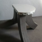Guéridon « cales d’usine » de profil.